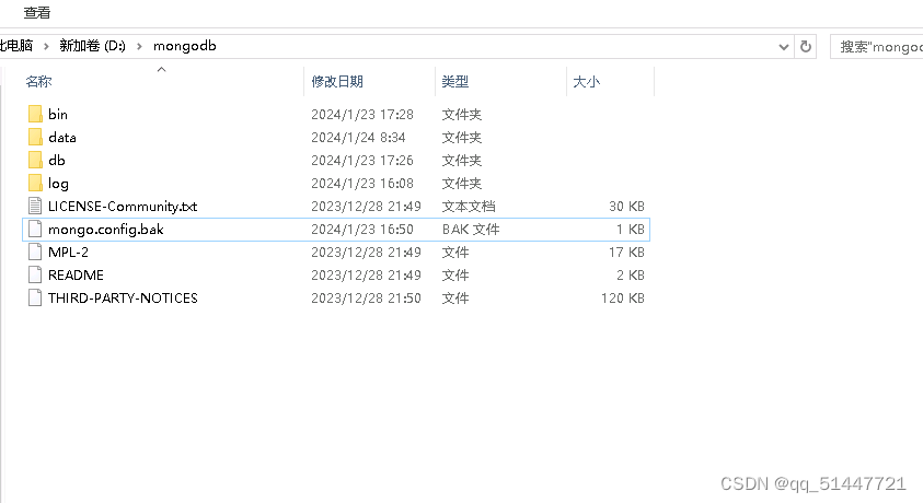 在data目录下,创建一个db文件夹; 类似于:‘D:\mongodb\data\db’;因为启动 MongoDB 服务之前需要必须创建数据库文件的存放文件夹,否则命令不会自动创建,而且不能启动成功;