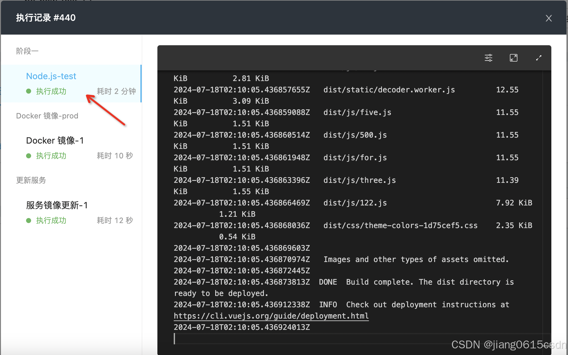 再次执行CI/CD的流水线编译过程,最后执行成功了。